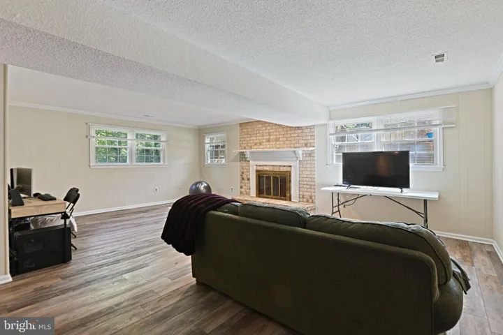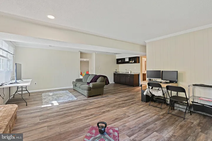 Downstairs, the lower level is full of possibilities. The first family room is especially large—plenty of space for a big sectional around the wood-burning fireplace—with a built-in wet bar for game days and easy entertaining. Just around the corner, another huge carpeted room offers real flexibility: a playroom, a movie room, or simply an open spot for everyone to spread out. Three additional bedrooms, a fully remodeled bath, and a bonus room add even more options. With a mix of LVP and carpet, and direct walk-out access to the yard, the lower level feels connected and usable in every season.