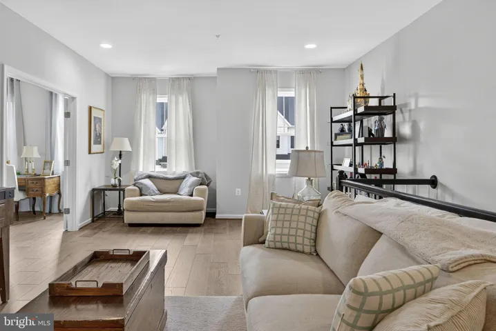 Be in for the HOLIDAYS! Great opportunity to make this almost new Chappelle model @ Candence at Lansdowne yours. This 2-level townhome in a sought after 55+ community and offers low maintenance living with over 2,600 sq ft of living space on two levels. A few of the home features include hardwood laminate flooring on main level and most of upper floor, pantry shelving, main level laundry with washer and dryer, 2 car garage with storage and fenced rear yard. The main floor has an open kitchen, dining and living room area along with an owner’s suite. White cabinets, granite counters, backsplash, stainless steel appliances, including a gas stovetop and wall oven along with a center island with large Farmhouse sink are a few highlights of the gourmet kitchen. The home has plenty of space for a dining table for when you host a family gathering along with room for several bar stools at the counter for a quick bite or a cup of coffee! The living area is bright with a sliding door leading to the rear yard and patio slab. A great feature of the home is the main floor bedroom with walk-in closet, and en-suite with dual sinks, large shower with seat, linen and water closet.