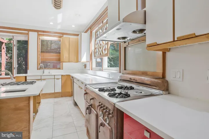 Experience exceptional living in this one-of-a-kind 5-bedroom home, perfectly positioned on a beautifully landscaped corner lot in the coveted Broadmont neighborhood of Falls Church City. The original solidly constructed brick rambler from 1952 is expanded with a 2003 two-story cedar-sided addition. The addition is framed with six-inch walls and insulation, and ten-foot ceilings on the first floor. It features hot-water radiant floor heat that keeps the marble floors and bedroom hardwood cherry floors warm on even the coldest winter days, ensuring the home remains comfortable and energy efficient without the dust of forced air systems. The radiant system is complemented by a new split system heat pump, while the original section of the house is serviced by an updated heat pump with a high-quality air filter and UV filter to neutralize allergens and microorganisms.