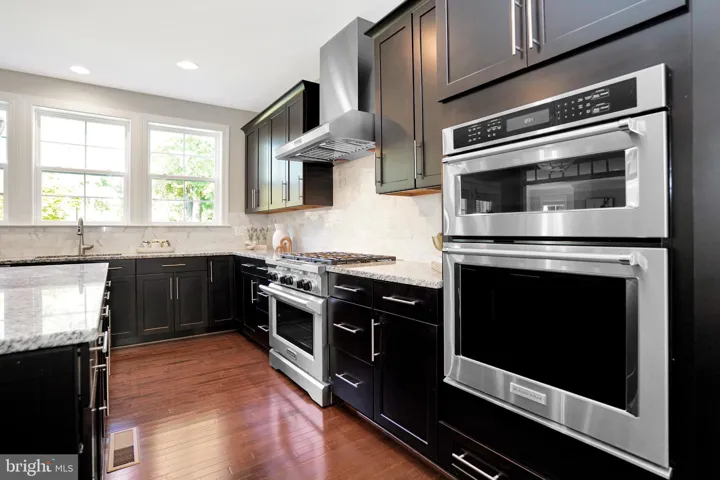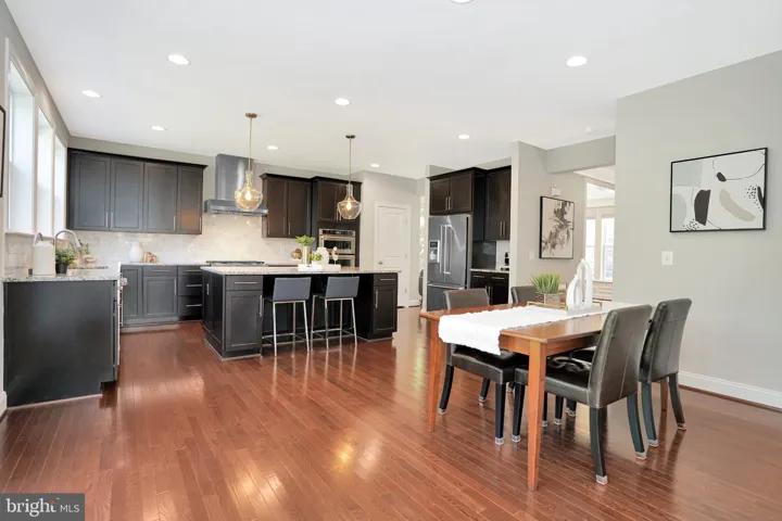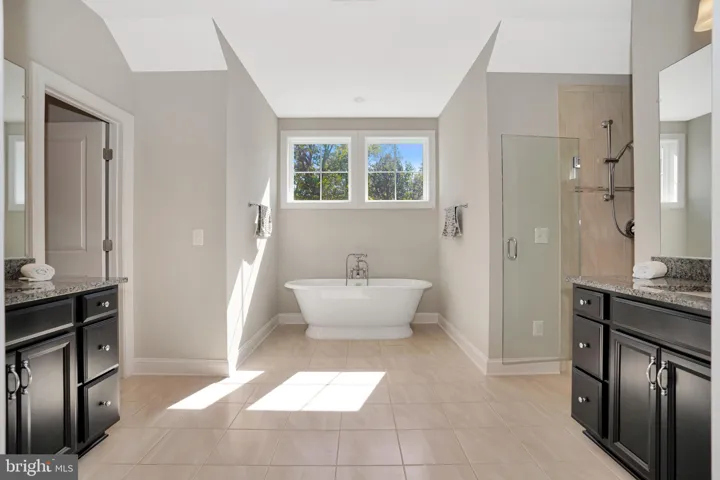 Gorgeous transitional colonial and craftsman style brick front home with 5 bedrooms, 4.5 bathrooms, and 2 car garage from Evergreene Homes, facing trees in the front and fenced backyard. The home is in excellent condition, and well cared for by the original home owners. The front patio is covered and entry leads to an open concept living basked in natural light and solid hardwood floors on main and upper levels. The gourmet kitchen with a dine-in center island with granite consists of Kitchen Aid professional grade range hood atop a six burner gas stove and oven, additional stainless steel wall oven and microwave combo, dishwasher, large fridge and pantry make this kitchen a complete treasure. Near the garage is another large pantry & mudroom combo space for additional storage. Next to the kitchen you’ll find the double French doors that leads to the stone patio, spacious fenced backyard and stairways to go down to the basement. Upstairs, the primary suite connects to a beautiful bathroom with a freestanding bathtub, shower with two fixtures, frameless shower glass doors, and separate double vanities. The primary suite consists of two walk-in closets. Three additional bedrooms accompany this floor. Two bedrooms share a Jack-and-Jill restroom, and last bedroom has an ensuite bathroom. The laundry room is also on the bedroom level adding extra convenience. The basement offers a separate bedroom and bathroom, a door that opens to a walk-up stairs into the backyard, a den that doubles as storage and large open space for entertaining. The home comes with two HVAC units. Located just minutes from Kingstowne Towne Center, Manchester Lakes Park, and Springfield Mall.