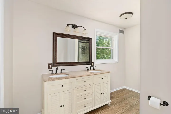 The newly renovated primary suite boasts an oversized stone walk-in shower for a spa-like experience. Additional updates include new windows , a full-house wiring system with a generator transfer switch, and all appliances, including the generator, conveying with the home.
