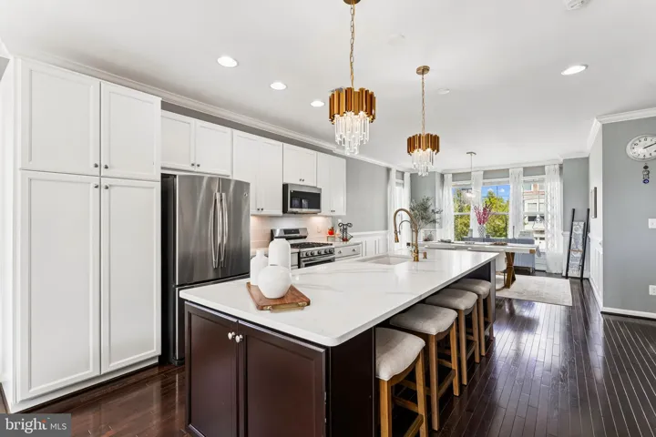 Stunning Miller & Smith Luxury Modern Townhome On Premium Lot. This Gorgeous 2 Car Garage End Townhouse Boasts A Premium Lot With Scenic Rear & Side Views. This home has been loved and maintained with 3+ bedrooms & 3 Full + 1 Half Baths. This home dazzles with a modern main floor layout and a large center kitchen with a beautiful quartz island. The kitchen features trendy quartz countertops, stainless steel appliances, gas cooking, coffee bar, large island and a spacious dining room. Enjoy the main level family room with a gas fireplace and a deck with an amazing scenic view and breathtaking sunsets. The upper level pleases with a large luxury master suite and 2 additional bedrooms with a full bath- all with upgraded tile. Located in a Great Community with amenities and pools. A commuters dream- located near 66, commuter lots and commuter rail. Nearby Virginia Gateway offers Great shopping, dining and more…
