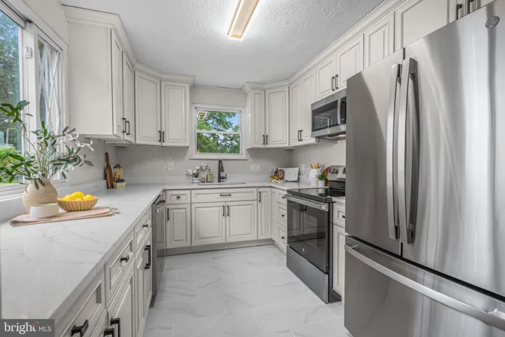 The heart of this home features a completely updated kitchen with soft-close cabinets, brand new stainless steel appliances, elegant quartz countertops, and a sophisticated backsplash that extends to the ceiling. The main level boasts beautifully refinished oak hardwood flooring, while the basement level features brand new waterproof luxury vinyl plank flooring for both durability and style.