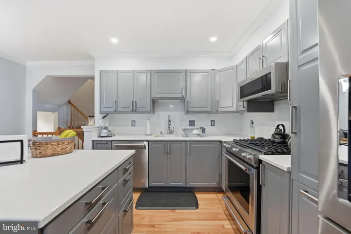 This lovingly maintained three-level home offers the perfect blend of space, style, and functionality, featuring four bedrooms, two and a half bathrooms, and a fully finished walk-out basement. From the moment you step inside, you’re welcomed by a bright and airy main level with hardwood floors and an open-concept layout that seamlessly connects the kitchen and family room. The updated kitchen is a chef’s dream, showcasing modern finishes and high-end KitchenAid stainless steel appliances, including a brand new gas stove. Custom remote-controlled blinds add a touch of convenience and sophistication, while the family room opens directly to a spacious 12′ x 24′ Trex deck (with drink rail and solar lights on each post) —ideal for entertaining or simply relaxing while enjoying peaceful views of the trees. Fresh paint and brand-new carpeting throughout the home make it truly move-in ready.
