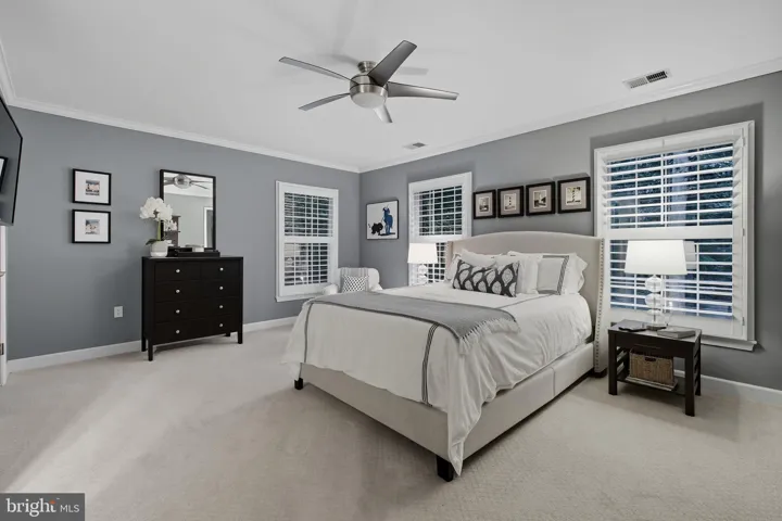 The owner’s suite is a true sanctuary, complete with its own cozy fireplace, private balcony overlooking the grounds, a spacious sitting room, and a spa-like bathroom with luxurious finishes that provide the perfect retreat at the end of the day. Secondary bedrooms are equally well-appointed, offering space and comfort for family and guests.