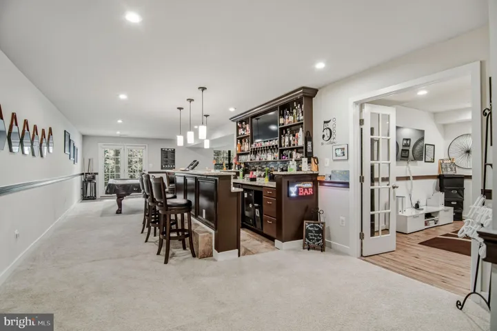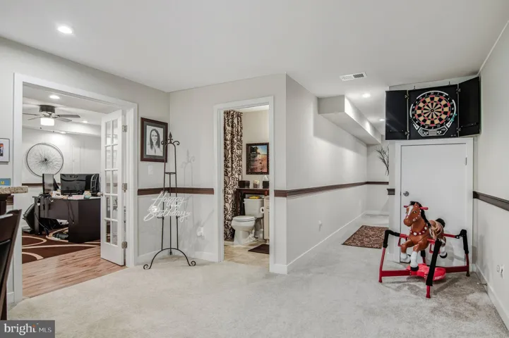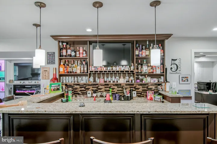 Why wait for new construction when you can move right into this impeccably finished home with every upgrade already in place? From the moment you step into the dramatic two-story foyer, you’re greeted by wrought-iron railings, soaring 10-foot ceilings, and elegant crown molding throughout. The sun-filled main level offers an open layout designed for both everyday living and effortless entertaining. A chef’s delight, the gourmet kitchen features granite countertops, stainless steel appliances, and a pantry, and seamless connection to the generous dining area and inviting living room. Step outside to a spacious Trex deck with an awning and solar lighting, where a peaceful, tree-lined backdrop creates a private retreat for morning coffee, weekend barbecues, or quiet evenings. The main-level primary suite is a luxurious escape, complete with a spa-inspired bath showcasing a dual-sink granite vanity, a walk-in ceramic-tile shower, and an expansive walk-in closet. Upstairs, you’ll find three sizable bedrooms (two with walk-in closets), a full bath with double granite vanity, and a versatile loft—perfect for a home office, play area, or lounge. The walkout lower level adds over 1,200 square feet of finished living space, ideal for entertaining. Enjoy a full bar with granite countertops, icemaker, and mini-fridge, a large recreation room with a built-in entertainment center with multicolor accent lighting, a full bath, plus a bonus room for an office or fifth bedroom (NTC), along with ample storage. Residents of Potomac Shores enjoy premier amenities including the Jack Nicklaus Signature Golf Course, Tidewater Grill, multiple pools, scenic walking and biking trails, a community garden, greenhouse, and much more. Commuters will love the easy access to I-95 and Route 1, with Fort Belvoir and Quantico nearby. A new VRE station is anticipated in 2026 and a new elementary school in 2027. This home truly has it all—schedule your visit today!