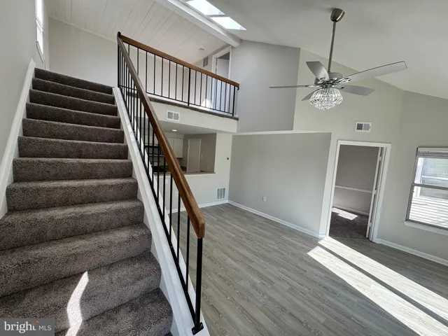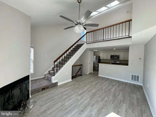 This convenient and sought-after 2-level vaulted condo with loft in Pembrook Village, Alexandria, offers an excellent location near Fort Belvoir. The home features two generous-sized bedrooms and a dramatic loft overlook, along with a 2023 updated kitchen with stainless steel appliances that opens to the living and dining areas. A cozy fireplace, skylights, and a primary bedroom with a full private bath add to the charm. The community provides one assigned parking space and two visitor passes, and it is close to shopping, dining, and major commuter routes.