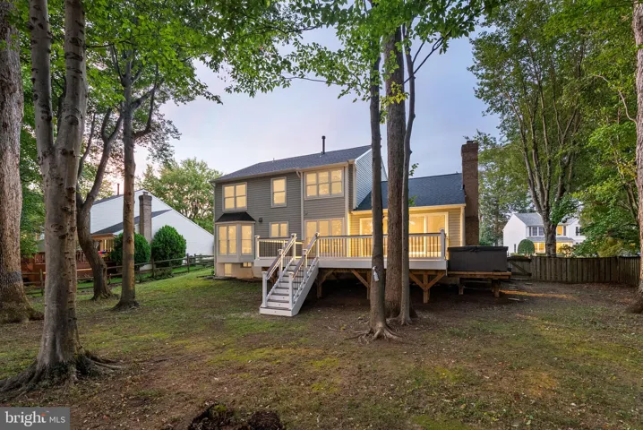 The house has a welcoming front porch and you are greeted by a lovely two story staircase and hardwood floors on the main level. One of the most sought after floor plans with a dedicated study on the main level, formal living and dining areas, an open concept kitchen and family room, and a sliding glass door that exits to the amazing composite and vinyl deck. This lovely home has a fenced in private back yard with an expansive brand-new deck (2024) that sets the stage for outdoor entertaining and relaxation.