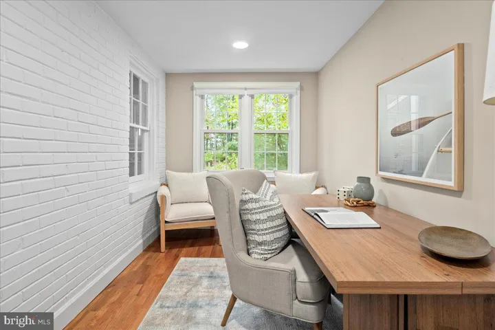 Step inside this light-filled home and discover a thoughtfully designed floor plan. The main level features a formal dining room with a wood-burning fireplace framed by built-in bookshelves, a home office, and a remodeled kitchen with Carrara marble countertops, farmhouse sink, pendant lighting, tile backsplash, a mahogany-topped island bar, and a cozy breakfast nook. Adjacent to the kitchen, the spacious living room with recessed lighting and a second fireplace flows seamlessly into an inviting sunroom—perfect for relaxing or entertaining—all set on warm hardwood floors throughout. There is a powder room located off the living room.