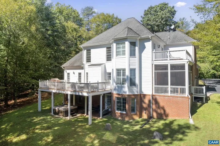 Beautiful brick Contemporary Colonial on 2.05 acres in sought-after Bentivar! This light-filled home offers multiple indoor & outdoor entertaining spaces, including a 2-story Great Room, large deck & screened porch overlooking the private yard. The library features custom built-ins, while the incredible owner?s suite boasts a tray ceiling, bay window sitting area with newly refinished private deck, spa-like bath, & an expansive walk-in dressing room. Hardwood floors flow throughout the main & upper level, with a Jack & Jill bath upstairs. The terrace level provides a family room, game room with wet bar, bedroom, full bath, exercise room & abundant unfinished storage. With a 2 car garage, fenced garden spot, & shed/Chicken Coop, this home has it all! No HOA. Recent updates include resurfaced driveway, new water heater, washer, dryer, refrigerator, & septic pumped, all within 3 years. Don’t miss the additional storage in Bedroom 3’s eaves. Only minutes away from everything Charlottesville has to offer, but feels like a private oasis! OPEN HOUSE 10/5 from 1-3pm.,Maple Cabinets,Solid Surface Counter,Fireplace in Great Room