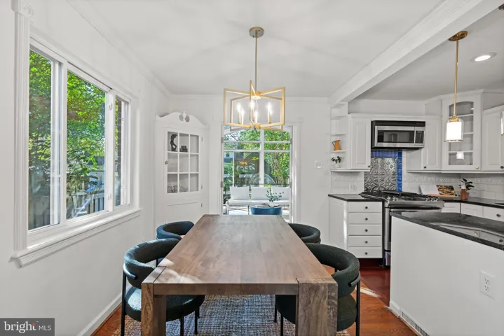 Welcome to this beautifully updated end-unit\Duplex townhouse offering the perfect blend of charm, comfort, and convenience—all just one block from the vibrant heart of Del Ray off Mt. Vernon Avenue. With approximately 1600 finished square feet across three levels including a walkout basement, this home is a rare opportunity in one of Alexandria’s most desirable neighborhoods and locations within Del Ray. Step inside to find hardwood floors throughout and an abundance of natural light. The welcoming main level features an updated kitchen with a newer five-burner gas stove (2022) and a brand-new refrigerator (2024), perfect for home chefs. A four-seasons sunroom with a gas fireplace and Trex staircase creates a warm, inviting ambiance year-round, ideal for relaxing or entertaining. Upstairs, you’ll find two well-appointed bedrooms and a bathroom with vaulted ceilings and newer custom shutters, adding character and charm. The finished walkout basement includes a kitchenette and a Murphy bed—ideal for guests, in-laws, or a private office. Additional highlights include a sump pump, newer water heater (within the last 5 years), new dining chandelier, kitchen pendant lighting and a cement-floor storage shed for added functionality. Outdoor living is equally impressive, with extensive hardscaping by Meadow Farms, a brick walkway, and a classic portico that warmly welcomes guests. The location is unbeatable—just minutes to Potomac Yard, Braddock Metro stations and National Airport providing quick access to DC, National Landing, Old Town and beyond.