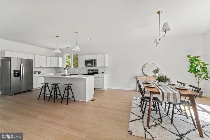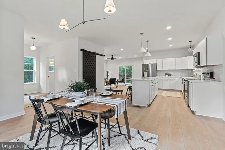 Inside, thoughtful design and quality craftsmanship are evident throughout the spacious layout. The open dining area is filled with natural light, creating an inviting space for gatherings. Luxurious finishes include recessed lighting, plush carpeting, and a primary suite with a large walk-in closet. The spa-like primary bath features a walk-in shower, designed to provide a relaxing retreat. Additional highlights include convenient washer/dryer hookups, attic storage, and carefully chosen design details that enhance comfort and functionality.