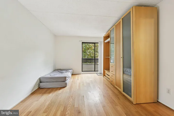 The bedroom wing feels restful and secluded, a quiet escape at the end of the day. The primary suite features wood floors, dual closets, and sliding glass doors that open to a second private balcony shared by both bedrooms—perfect for enjoying a soft morning breeze or an evening under the stars. The ensuite bath offers a clean, timeless design with a walk-in shower and extended vanity, while the second bedroom—bright and versatile—serves beautifully as a guest room, home office, creative space, or comfortable second bedroom.