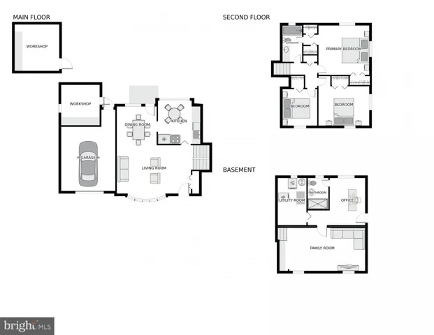 The home boasts an expansive rec room with built-in shelving, providing ample space for relaxation and entertaining. Additional convenience is offered with an attached garage, complete with a workshop space behind it, ideal for any hobbyist or DIY enthusiast.