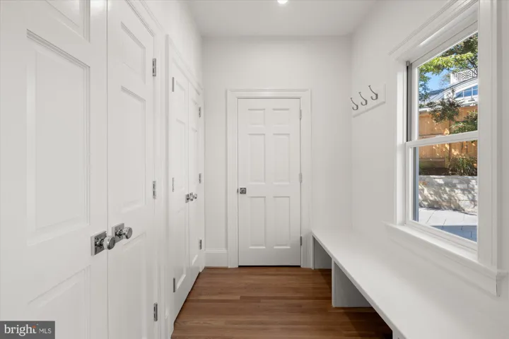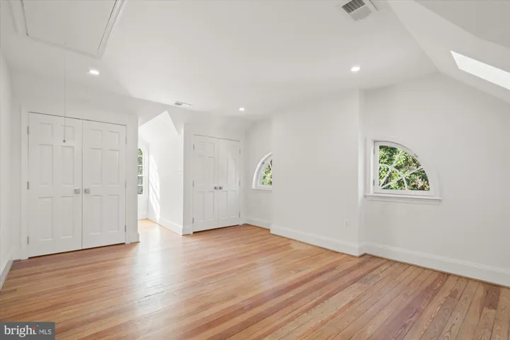 The bedroom-level laundry room includes a folding station, quartz counters, sink, and Oslo Oak cabinetry. The fourth-level retreat—highlighted by original pine floors, dormer windows, skylights, and a window bench—adds architectural character and flexibility.