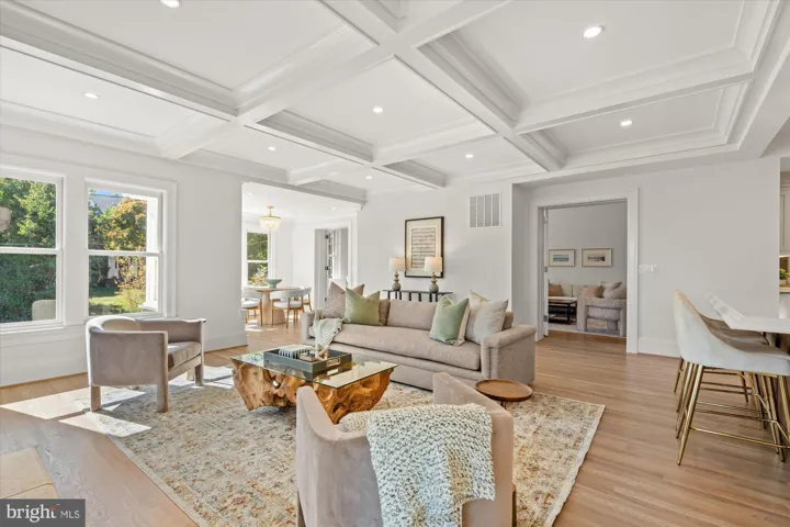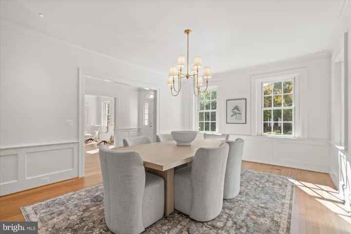 Inside, the craftsmanship continues with white oak flooring, 1 ¾-inch solid-core doors, 9-inch baseboards, oversized 5-inch window and door casings, and 7-inch, two-piece crown molding. Recessed panel wainscoting enriches the foyer, staircase, and dining room, while designer lighting adds warmth and sophistication throughout.