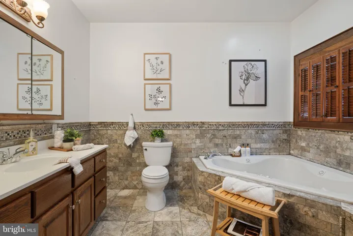 The upstairs owner’s apartment is its own private retreat with a full kitchen, living and dining areas, home office, luxury bath with jetted soaking tub and walk-in shower, an oversized bedroom, walk-in closet, and a private deck for coffee at sunrise. This level includes its own laundry hookups and is ideal for live-in owners seeking privacy within the estate.