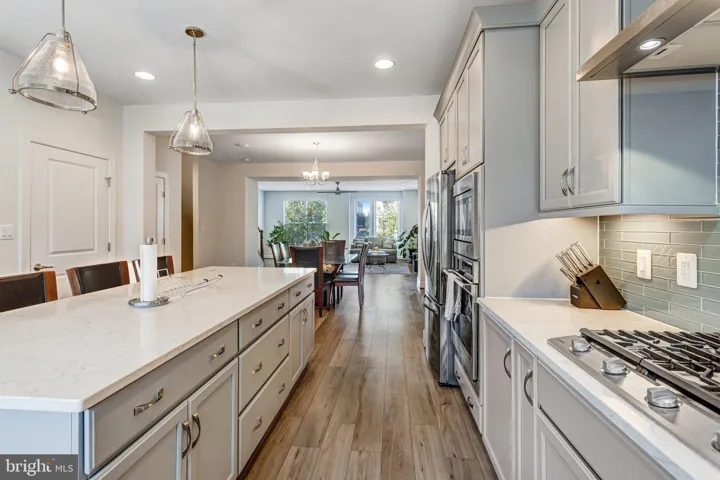 Enter the lower level to find a large foyer area, bedroom, full bath and recreation room. Up the Oak hardwood stairs with White painted risers including integrated bullnose and Scotia Molding, discover an open concept kitchen, living and dining room along with custom, cellar blinds with remote in the kitchen and plantation blinds throughout the home. The gourmet kitchen features elegant crown molding wood cabinets with Glendale Pull Satin Nickel hardware, Kohler Bellera Pull down Spray Polished Chrome Faucet, Pendant Lights, Spice drawer cabinet, Stainless Steel Appliances, Wall Oven, built in Microwave, 5 burner cooktop with vent hood outside, dishwasher, French Door Refrigerator, Quartz countertops, huge center island with room for bar chairs for extra eating space or guest, spacious Pantry, custom automatic blinds (with Remote) opening to your spacious terrace with gas hookup. While relaxing on the terrace use your Retractable Awning (with Remote) that automatically retracts in severe weather. Entertain with guests or just relax in the Living Room and Dining area with recessed lighting.
