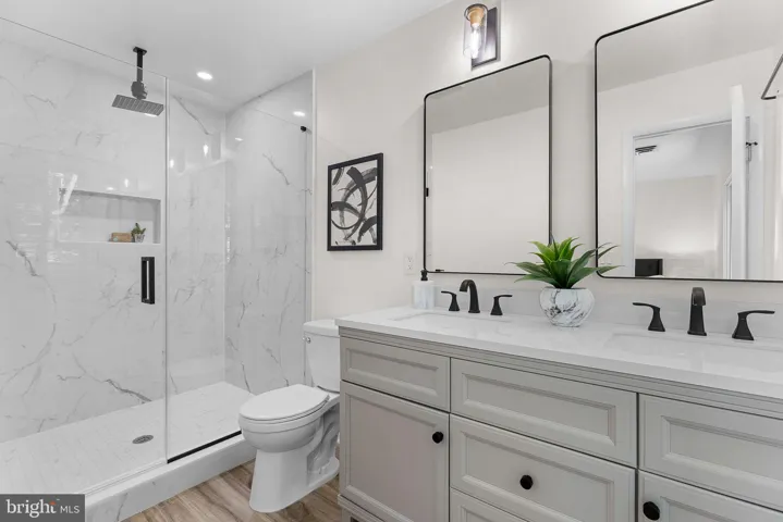 LAKE BARCROFT | Stylishly Renovated 4BR/3BA with Lake Access. This beautifully renovated showstopper in the coveted Lake Barcroft community blends timeless charm with sleek, modern finishes. From the striking black-framed windows to the gleaming hardwood floors, every detail has been thoughtfully upgraded. The main level offers a seamless flow with a reimagined eat-in kitchen featuring stainless steel appliances, quartz counters, crisp white cabinetry, and a sleek coffee bar. A bay window and wood-burning fireplace anchor the living room, while the adjacent vaulted dining/family room includes built-ins and oversized French doors that open to a spacious deck and private, flat backyard. Upstairs, find 3 bedrooms and 2 fully renovated baths — including the ensuite primary with a spa-inspired bath and oversized walk-in shower. The lower level features new luxury vinyl plank flooring, a second fireplace, built-ins, a fourth bedroom, and a third full bath—plus walkout access to the fully fenced yard. Additional highlights include a spacious laundry/utility room with ample storage, a semi-circular stone driveway, and an oversized 1-car garage. Enjoy all that Lake Barcroft has to offer—five private sandy beaches for swimming, boating, and fishing, plus community events year-round. With easy access to major commuter routes, East Falls Church Metro, Tysons, Arlington, and DC, this Lake Barcroft home offers the perfect balance of serene living and urban convenience. Agent/Owner