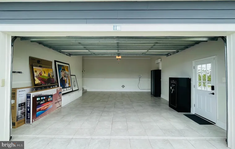Unique garage that gives an atmosphere of a living space! Finished conditioned garage w/mini split air conditioner-heat pump, large concrete tile flooring, an overhead 2-light residential fluorescent lighting, built-in bench w/storage, a storage cabinet, garage opener w/keypad, & benefit of a service door for easy in&out access.