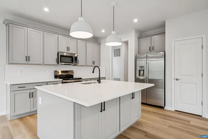 Discover the perfect blend of nature, convenience, and room to grow with the Sheffield Floorplan at Pleasant Green. Located just 13 miles from UVA and in the heart of Downtown Crozet, this new construction home offers wooded privacy with walkable access to shops, dining, and trails. The Family and Dining Area features a wall of windows with tree-lined views, while a 12?x16? deck overlooks a babbling brook?ideal for relaxing or entertaining. At the center of the open main level, a gourmet kitchen Island with gray cabinets and quartz counters anchors the space, perfect for meals, homework, or gatherings. Upstairs, the King-size Primary Suite includes a double-vanity bath and walk-in closet. Two additional bedrooms, each with walk-in closets, share a full bath and are located off a cozy Sitting Room and convenient Laundry Room. The unfinished walkout basement with full bath. Direct outdoor access makes it a true extension of your living space.Community amenities include a renovated clubhouse, fire pits, playground, and more. Estimated completion is November 2025. This is a SPEC home with final, out-the-door pricing. *Photos are of a similar model home. Schedule your private tour today!