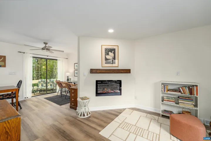 Get a better than new condo under $400K. Completely remodeled from floor to ceiling with beautiful finishes and neutral design. This will be a light filled, sweet oasis with private entrance. You enter from the 2nd level with kitchen, dining area, half bath, living room with electric fireplace. The mantel above the fireplace is custom walnut. The kitchen features all new stainless appliances and granite counters. There is a sitting area off the dining area that can be a home office space next to the sliding doors that take you to a cozy deck. New roof in 2021. This home backs to wooded areas to give the feel of living in the country. Everything in this home is brand new!,Granite Counter,Fireplace in Living Room