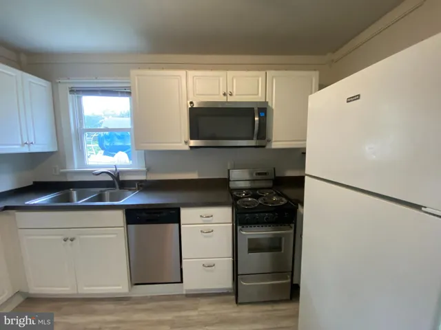 The kitchen is equipped with appliances including a refrigerator, gas range/oven, microwave, and dishwasher, complemented by ample cabinet space and vinyl flooring. A washer and dryer are included, adding everyday convenience.