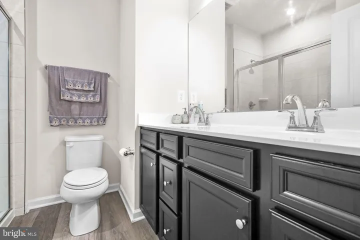 Modern townhome bliss that’s a stone’s throw from Quantico and so much more? It’s all right here at 18353 Reaper Hill Court! Constructed in 2022 and showing like-new, this three-level townhome includes three bedrooms, 3.5 baths and more than 1,700 square feet of living space. The residence is nestled in the Eagle Row community, which includes an intimate collection of approximately 40 residences, a playground, small park and dog park. Zooming in on the plot here, the residence is tucked in a quaint row of four townhomes. Front yard landscaping is done by the HOA – low-maintenance heaven, folks! For parking, there is a concrete driveway and one-car garage. And, for additional parking, there is ample street parking, visitor parking and, for a fee, permanent spots are purchasable. For quieter moments and escapes, the back yard space includes a composite deck. The townhome follows Ryan Homes’ Auburn model and includes lovely bricking, dark gray siding and darker gray shutters. Heading inside and on the lower level, you’ll find a bedroom with an attached full bath, complete with a single sink and tub/shower combo. Note the dark grey luxury vinyl plank flooring throughout this level (and the upper level, too)! Upstairs and to the main level, you’ll find a living room space with a massive window, ceiling fan and, on the wall, a hook-up for a primo TV set-up. The natural light is stunning! Additional highlights include a half bath, an eat-in dining space with deck access and the kitchen. The kitchen includes espresso cabinets, granite countertops, an island, GE stainless steel appliances and a big sink. Up a set of hardwood stairs, you’re greeted with the primarily carpeted upper level. This level includes two bedrooms and two full baths. The primary suite includes a big window, double-doored closet and ensuite bath with a stand-up shower, two sinks and vinyl flooring. The additional full bath upstairs has a tub/shower combo and single sink. Of the additional bedrooms, note one that has attic access for bonus storage. For laundry, there’s a closet upstairs with stackable machinery! For added comfort, the home is equipped with a Nest thermostat, air purifier/humidifier and the HVAC has been seasonally maintained. Quietly nestled off US-1, you’re within minutes of Quantico (and its VRE station), I-95 access (Triangle) and a number of grocery, shopping and dining destinations! The home is a perfect mid-point between D.C. and Fredericksburg, each within 30 miles. Seamless Quantico, Fredericksburg and D.C. commutes await with this stellar location… let alone all the memories to be made within its charming confines! Book your showing of 18353 Reaper Hill Court today!
