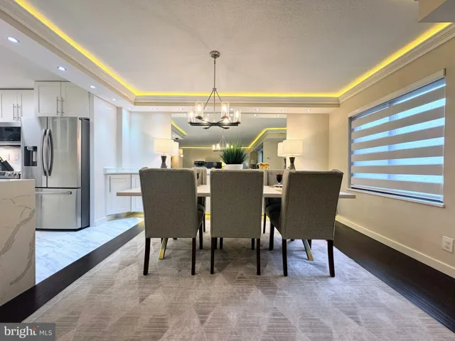 Welcome to resort-style living inside the Beltway! This stunning 3-bedroom, 2-bath, 1,621 sq. ft. condo in the sought-after Watergate at Landmark (Building 2) combines modern luxury with unmatched convenience. Perfectly positioned on the 2nd floor, this desirable corner unit offers extra privacy and a spacious private balcony overlooking lush greenery. Inside, the reimagined chef’s kitchen is a true showstopper—featuring custom white shaker-style maple cabinetry with soft-close doors and drawers, quartz countertops, under-cabinet lighting, and sleek 24”x24” porcelain tile flooring. High-end stainless steel appliances include a refrigerator with ice maker, electric range, microwave, and a full laundry center with stacked front-load washer and dryer. A wrap-around breakfast counter with seating for four creates the perfect spot for casual dining, while extended cabinetry into the dining area adds valuable storage and serving space. The spacious owner’s suite offers three closets—including a large walk-in—for outstanding storage. The second bedroom is spacious, and the third has been redesigned as a bright, functional home office with both a windowed door from the living room and a solid entry door from the hall. Additional highlights include: Luxury sustainable bamboo flooring throughout the living, dining, and bedrooms (no carpet!). Spa-inspired baths with porcelain tile and a dual-height jet spray shower, Extensive LED recessed lighting. Beyond your front door, enjoy the unmatched amenities of this 37-acre gated community: indoor and outdoor pools, indoor and outdoor tennis courts, racquet club, fitness and jogging trails, landscaped gardens, picnic gazebos, and more. The condo fee includes all utilities (electric, gas, water, sewer, trash, and building antenna) plus four unassigned parking passes. This is more than just a home—it’s a lifestyle. Modern updates, resort-style amenities, and a prime location inside the Beltway make this condo the complete package.