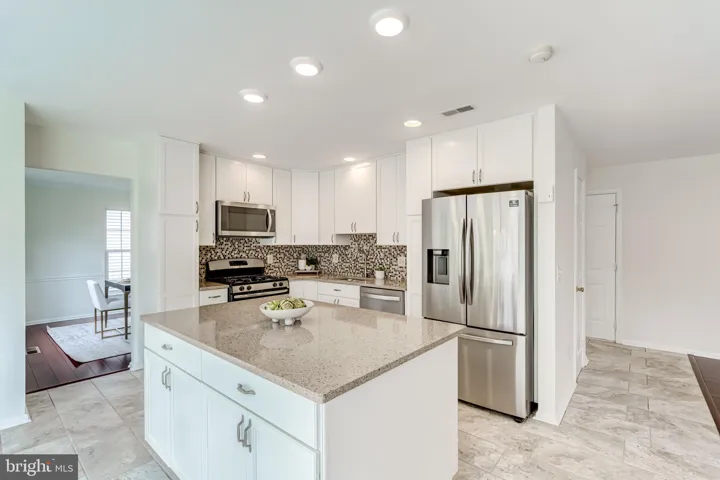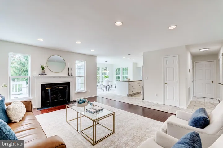 Step through the front door into a two-story foyer that immediately sets the tone—airy, open, and inviting. The main level features bamboo flooring and recessed lighting throughout, creating a warm, balanced glow. The kitchen, completely remodeled with ceiling-height cabinetry, quartz counters, stainless steel appliances, and ceramic tile floors, flows seamlessly into the family room, where a gas fireplace becomes the focal point for cozy evenings and relaxed gatherings.
