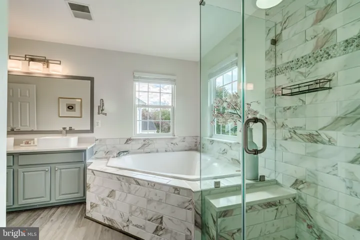 Upstairs, the primary suite serves as a tranquil retreat with abundant natural light, a spacious walk-in closet, and a luxurious bath featuring dual vanities, a soaking tub, frameless glass shower, and private water closet. Three additional bedrooms and an updated hall bath complete the upper level with comfort and style.