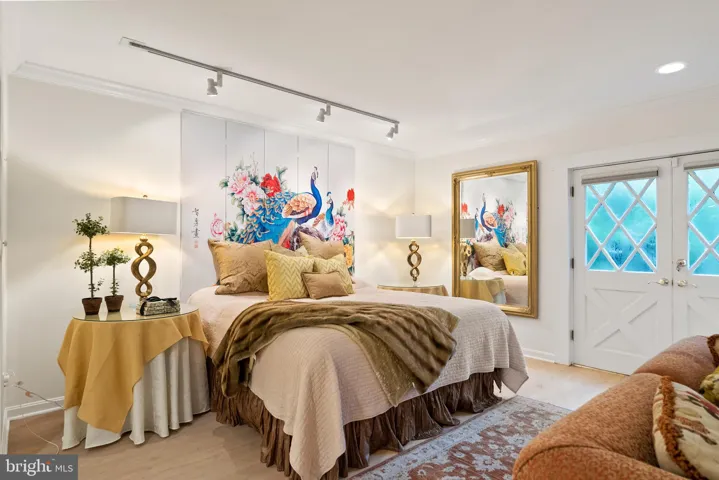 Upstairs, the primary suite offers a fireplace, an extraordinary custom dressing room with handcrafted burled walnut and mahogany cabinetry, and a spa-inspired bath designed for relaxation—two additional bedrooms on this level feature cathedral ceilings and abundant windows overlooking the gardens. The lower level provides remarkable flexibility for guest accommodations, fitness, media, or lounge space.