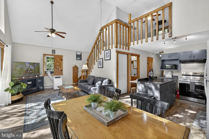 Secluded chalet-style cabin just minutes from Bryce Resort & Lake Laura! Featuring vaulted ceilings, vinyl plank flooring, and an open layout connecting the kitchen, dining, and living areas – overlooking a wooded yard with a spacious outdoor deck. A cozy loft adds extra space for relaxing or storage. Professionally designed with all new furniture, modern decor, and a hot tub. As a vacation rental it has generated $69,000 over the past two years ($34k last year), and can come with an existing property manager and cleaner. Hot tub and furniture optional, available for purchase. See seller docs for a summary of rental history and financials. $1,000 buyer credit if you continue using the same property manager. Perfect vacation home or investment property!
