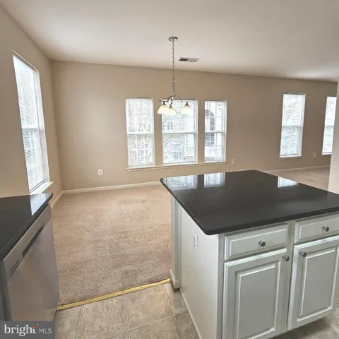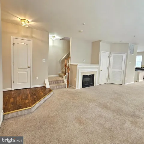 Grant model end-unit with two levels, two bedrooms, two and a half baths, 1 reserved parking, and extra windows on a quiet street. Features include natural wood kitchen cabinets, granite countertops, neutral paint, a spacious living/dining area with a fireplace, and a cook’s kitchen with premium stainless steel appliances. and a laundry room with a washer and dryer. The upper level offers two ensuite bedrooms, each with walk-in closets and full baths, plus an open den/office space. Community amenities include water, a fitness center, courts, playgrounds, and convenient access to parks, shops, and transportation to the Van Dorn Metro. The community also has a restaurant, cafe, dog grooming, child daycare, elementary school, and cleaners all within a short walking distance of the condo.