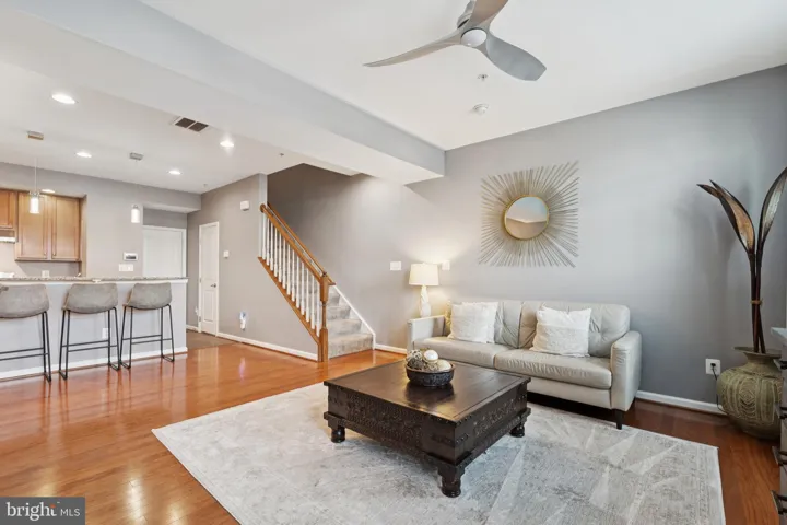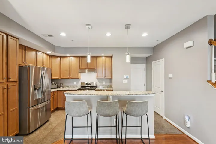 The main level is tailored for easy living with wood flooring flowing through the warm and welcoming living room and dining area, and a kitchen that delivers that “brand new” vibe with granite countertops, stainless steel appliances, recessed & pendant style lighting, tile flooring, and a breakfast bar perfect for casual meals or coffee with friends. A stylish powder room and rear-entry garage round out a smart, easy-living floor plan designed for modern lifestyles.