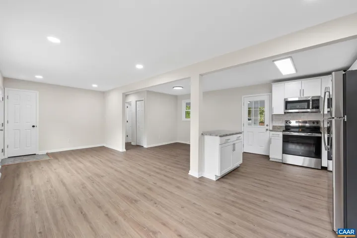 Experience one-level living in this fully remodeled brick ranch, perfectly situated on 1.5 acres in Louisa. This is a truly move-in-ready opportunity! The light-filled, open concept home has a connected living room, dining area, and the full updated kitchen with new granite countertops, white cabinetry, modern tile backsplash, and stainless steel appliances. Retreat to the primary suite, featuring a cozy fireplace, a walk-in closet, and an updated private bath. Two additional bedrooms have new carpet and share a remodeled full bath. Practicality meets curb appeal with a two-car carport that doubles as a covered porch area. The expansive 1.5-acre lot is flat and landscaped, offering a perfect setting for outdoor enjoyment. Don’t miss this blend of country tranquility and convenient access to Charlottesville!,Granite Counter,White Cabinets,Fireplace in Master Bedroom