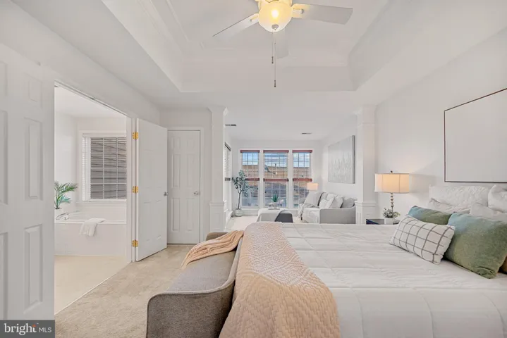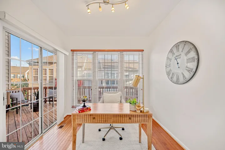 Welcome home! Nestled in the desirable Overlook community, this elegant townhome welcomes you with an inviting layout with sophisticated finishes and bumpouts on all three levels, offering flexible spaces throughout the home. On the main level, gleaming hardwood floors flow seamlessly from the light-filled living room, anchored by a cozy gas fireplace and floor-to-ceiling windows, to the formal dining room, accented by sophisticated columns. The expansive kitchen boasts stainless steel appliances, sleek granite countertops, and a peninsula bar that opens into the sunny breakfast nook. A perfect private home office offers wall-to-wall windows and elegant French doors. Upstairs, discover a luxurious primary bedroom suite, featuring a stunning tray ceiling and its own private sitting area. The en suite bathroom is spacious with a wide double sink vanity, soothing soaking tub, and a separate step-in shower. Both additional bedrooms are generously sized with ample closet space and shared access to the second full bathroom in the hall. Downstairs on the entry level, you’ll find the fourth sizable bedroom and third full bathroom, making this an ideal private space for guests. A roomy recreation room provides further flexibility for a home gym or playroom. Laundry and direct access to the attached garage round out this level of the home. Walk out onto the patio from this level, or step outside onto the wooden deck off the kitchen to enjoy a breath of fresh air or dining al fresco. On the front of the home, the one-car garage and driveway offer convenient space for both storage and parking. Community amenities include an outdoor pool, tennis courts, and trails woven through the neighborhood. Conveniently located just minutes to Giant, Safeway, Kingstowne Town Center, Springfield Town Center, Huntley Meadows Park, Fort Belvoir, and The Pentagon. Commuting is a breeze with quick access to the Franconia–Springfield and Van Dorn Metro stations, I-95, and I-495. Schedule a private tour of your gorgeous new home today!
