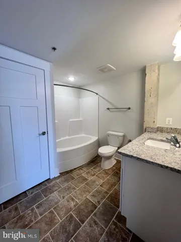 The unit offers two bedrooms, each with its own private bath. The primary suite provides ample closet space and a soaking tub. Rent includes water, sewer, and trash. The building also features elevator access. Street parking.