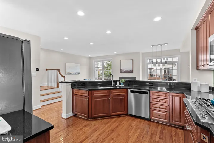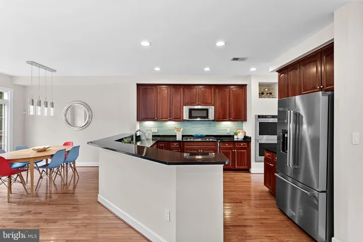 Perfectly updated and ideally located, this brick-front Stanley Martin townhome in the sought-after Village at Herndon Mills is move-in ready and offers the best of convenience and community. Nestled in a private neighborhood, you’ll enjoy quick access to major commuter routes, the W&OD Trail, and a short walk to dining, shopping, and the many events of historic downtown Herndon. Inside, thoughtful upgrades include fresh paint, brand new carpet, and a bright, open floor plan designed for modern living. The main level features an updated kitchen with all new stainless-steel appliances (2025), granite counters, double oven, and gas cooktop, along with an updated powder room, recessed lighting, and upgraded trim throughout. Upstairs, the spacious primary suite boasts a tray ceiling, walk-in closet, and ensuite bath with dual sinks, soaking tub, and separate shower. Additional highlights include refreshed bathrooms, freshly re-grouted tile, and convenient bedroom-level laundry. The lower-level walkout basement offers abundant natural light, a wet bar, full bath, and flexible space for entertaining. Outdoor living is just as inviting, with a deck and ground-level patio. Car enthusiasts will appreciate the upgraded garage with insulated high-end doors, storage cabinets, and a workbench that conveys. With its one-owner history, like-new condition, and recent system updates—including a 2019 water heater and 2023 upper level HVAC—this home delivers true peace of mind in a prime location.