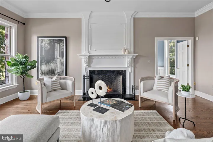 The residence features five bedrooms, each with an ensuite bath, plus two half baths. Architectural highlights include refinished hardwood floors, tall ceilings, and French doors with transom windows. The kitchen is appointed with upscale appliances, dual dishwashers, and abundant cabinetry, and it opens to a breakfast room and a family room with a wood-burning fireplace that flows seamlessly to a three-season screened-in porch. The main level also offers a formal dining room, a living room with its own fireplace, and a convenient half bath. A large billiard room with built-ins and a private entrance provides additional versatile living space.