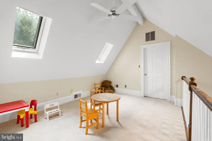 Upstairs, the home features four spacious bedrooms, including a luxurious primary suite with a fully renovated spa-like bath, complete with dual vanities and a walk-in shower, as well as two dressing rooms. Two of the secondary bedrooms offer unique lofted spaces, ideal for play, study, or creative use.