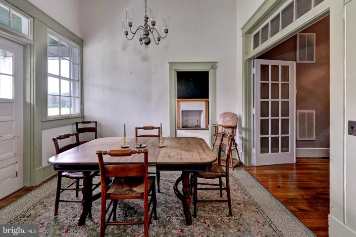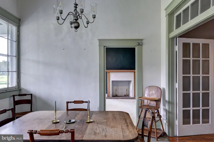 This spacious and captivating Essex County Historic Treasure features 12′-3″ ceilings on the first floor and 9′-0″ on the second floor. According to the 1940 & 1957 re-published edition of the Essex County Green Book, Woodbourne, located in Upper Essex County, was originally built around 1840 by William Brooke of Brookes Bank. The original home was of stately proportions with 12 spacious rooms, an observatory on the roof, and four tall chimneys. Sadly, the original house burned in 1928. A circa 1930 house was built upon the original basement and foundation, with the original chimneys salvaged and utilized in the construction of the 1930 house. An absolutely mesmerizing and serendipitous columned front Portico / Porch circa 1930, incorporates the broken marble mantles from the original Woodbourne. It is a truly striking feature of the property, which pays homage to the original Woodbourne. One of the most intriguing interior features of this handsome home is the grand entrance hall, which leads to an wide arched opening and center hall, which extends through the length of the first floor, with its soaring 12’+’ tall ceilings throughout! 9′ ceilings on the 2nd Floor. Original and operational windows were restored (complete with chains and pullies) as well as several transoms and other architectural elements that are not often seen in newer homes. Beautiful floors throughout with Carpet over top of wood floors in some rooms. Modern amenities include updated plumbing, wiring, laundry room, spacious full baths, and loads of storage space. Towering Ancient Magnolias and other ancient trees abound. Circular driveway is paved in addition to other parking areas behind the house up to the 1,350+ square foot Morton Metal Building, which can be utilized as a garage, equipment storage, or workshop. Although this property needs some cosmetic TLC, it is a treasure with fabulous architectural details and bright light-filled spaces. The offering of Woodbourne, circa 1930, is a truly unique and exceptionally rare buying opportunity. Ideally located off of U.S. 17 between Tappahannock and Port Royal. This must-see historic treasure and a diamond in the rough awaits! Exterior siding is Cypress Shingle and Cypress Clapboard. Wonderfully convenient to Fredericksburg, Tappahannock, the Northern Neck, Dahlgren, Richmond, Southern Maryland, and Washington, D.C.