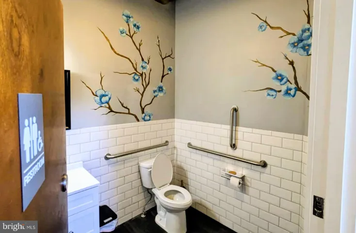 The main level is currently built out as a turnkey coffee shop, complete with two bars, multiple hand-wash sinks, a 3-compartment sink, and a mop sink — fully plumbed and ready for operation. Large storefront windows bathe the space in natural light, while its corner exposure ensures maximum visibility. Facing a public park, it benefits from city-approved outdoor seating, creating the ideal setting for a café, boutique, gallery, or creative studio.