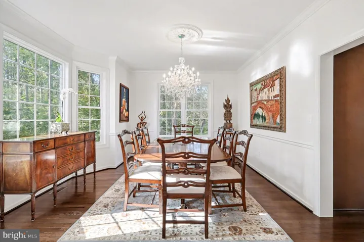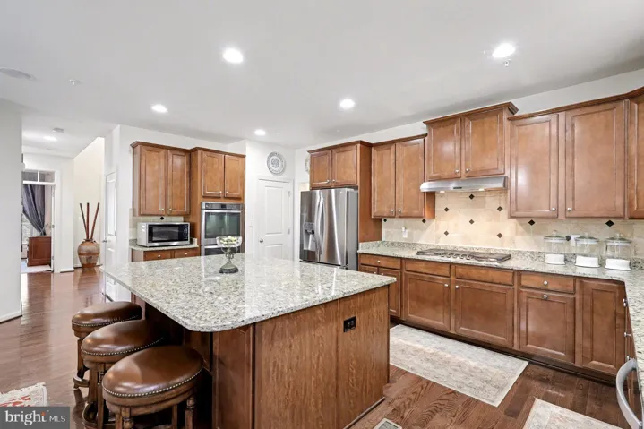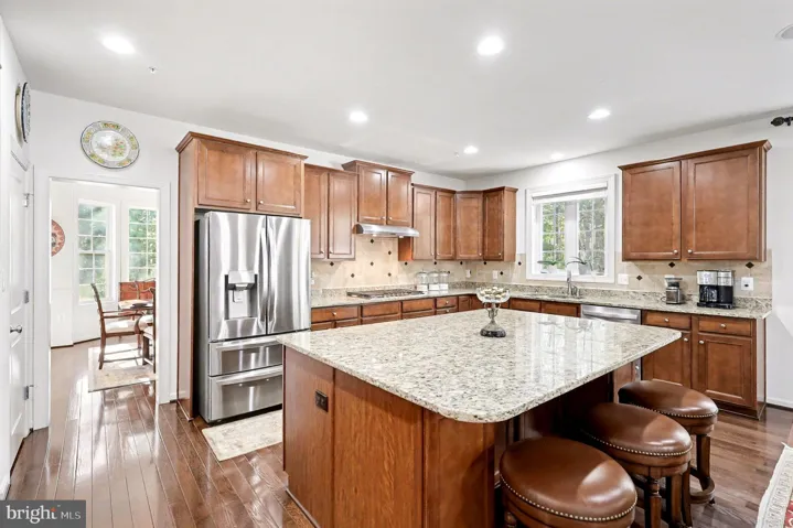 Must see – Beautiful Brick Front Colonial Home with over 5300 total sq ft on 3 levels. This Winchester, The Oxford II home has a 4 ft extension that is built on a premium private lot with trees lining the side and backyard in sought after Poplar Run Community. The 2 level grand foyer with crystal chandelier welcomes you to this spacious 4 bedroom, 4.5 bathroom home. The primary bedroom has a large partitioned walk in closet, tray ceiling, sitting room and bathroom with a soaking tub and walk in shower. Guest bedroom connects to a private bathroom. Additional 2 bedrooms share a Jack and Jill bathroom. Laundry room with sink is conveniently located in the upper level. The gourmet kitchen with granite countertops and oversized island has a pantry, and new appliances (cooktop, stainless steel refrigerator and dishwasher). Hardwood floors flow throughout the main level from the gourmet kitchen to the great room with custom lighting, gas fireplace and french doors leading to backyard patio. The living and dining rooms are adorned with a bay window, crown moulding, chair railing, shadow boxes and an elegant crystal chandelier offering a formal ambiance for the holidays and special celebrations. Surround sound speakers pipe in music and shows throughout main level, office and primary bedroom. The home has been freshly painted throughout the interior and exterior. The lower level has brand new carpets installed in the stairs and large recreation room which has recessed lighting, a full bathroom and walk up stairs to the backyard. Relax outside and enjoy the wonderful stone patio with pergola in privacy which is perfect for outdoor family gatherings and grilling (w gas line connection). Well maintained home systems, clean air ducts, AC compressor 3yrs old, a security alarm and 2 ceiling fan pre-wires. LOCATION – bus stops in community and Glenmont Metro is about 3 miles away! Convenient to shopping, Wheaton Regional Park and Brookside Gardens. Make this your next home!