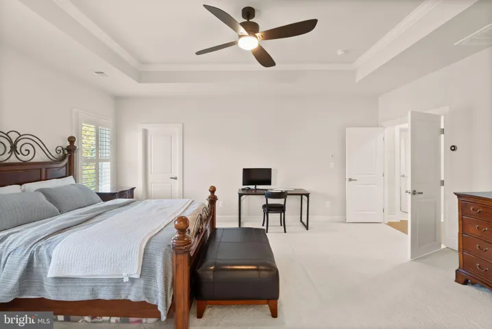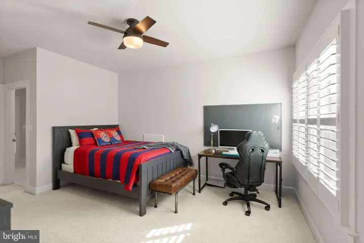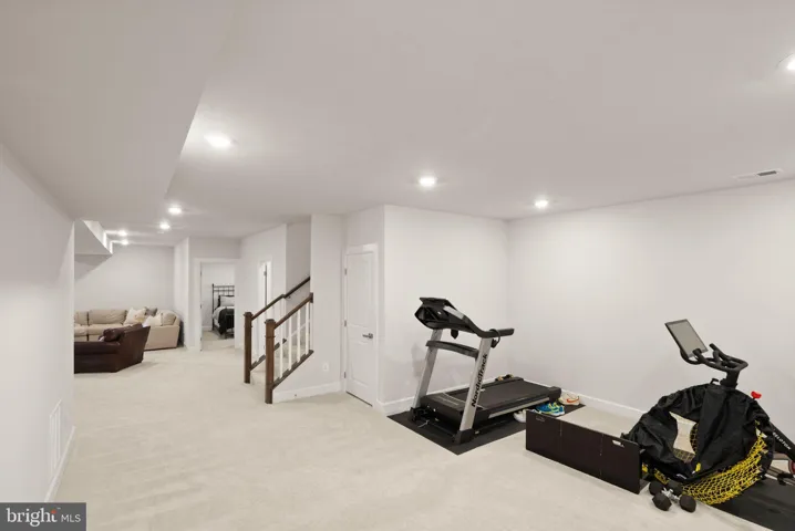 The finished lower level offers a sprawling recreation room, additional bedroom, and full bath with granite counters—perfect for guests or extended living. Throughout the home, classic and elegant white plantation shutters add style and privacy, including in the garage.