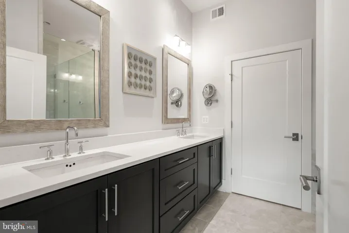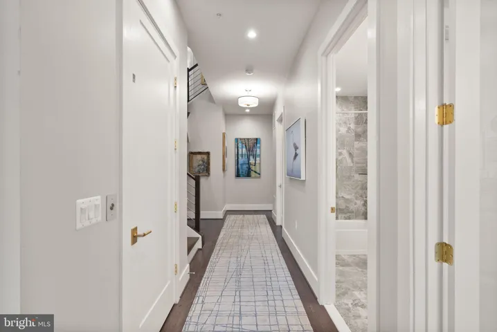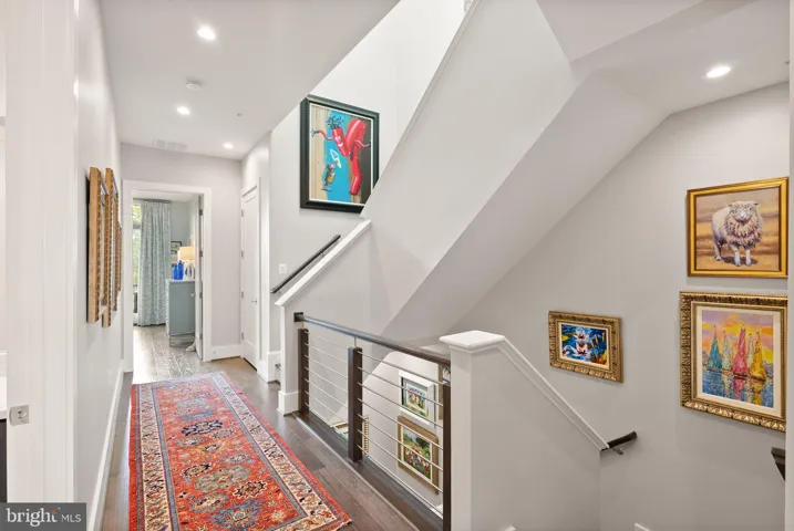 Upstairs, the primary suite is a true retreat, featuring high ceilings, an elegant spa-inspired bathroom with a soaking tub and walk-in glass shower, and a private balcony perfect for morning coffee or evening relaxation. The large walk-in closet is fitted with custom built-ins that blend beauty and organization. Two additional spacious bedrooms share a beautifully upgraded full bath, and the laundry room offers abundant cabinetry and storage. The top floor is an entertainer’s dream, designed for casual gatherings or quiet evenings under the stars. This versatile space includes custom shelving, dramatic ceilings, and a wall of sliding glass doors that open to the private rooftop terrace—complete with panoramic views, ideal for dining, lounging, or enjoying sunsets. This one-of-a-kind residence seamlessly combines style, sophistication, and comfort with exceptional architectural design and a premier location. Walkable to Trader Joe’, Barnes & Noble, Starbucks, and One Loudoun’s shops and restaurants, with easy access to nearby Whole Foods, Costco, Dulles Airport, downtown Leesburg, and Reston Town Center. Luxury, lifestyle, and location unite in this extraordinary One Loudoun home. Amenities are: huge outdoor pool & deck, 3 level clubhouse with indoor basketball, great room, dining hall, and catering kitchen available for rent, yoga studio, sports fields, sand volleyball court, tennis & pickleball, 1/4 acre fenced dog park, a newly constructed playground, and scheduled community entertainment at the outdoor Barn.