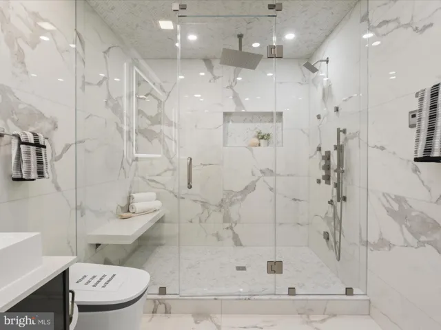 The upper level features four bedrooms, including a custom-built walk-in closet with ample shelving and storage. The primary suite offers generous space, abundant natural light, and a luxurious modern bathroom with a large dressing area and walk-in closet. Two additional bedrooms share a beautifully updated full bath, making this level both stylish and comfortable for everyday living.