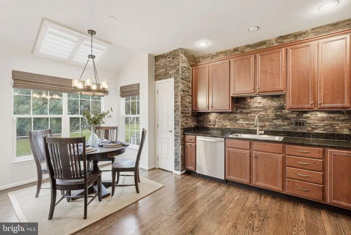 From the moment you enter the main level, you’re greeted by rich dark hardwoods contrasted against a soft neutral palette—an elevated balance of warmth and modern restraint. The kitchen stuns with granite counters, stainless steel appliances, and a designer stone backsplash, flowing seamlessly into the breakfast nook with access to a private Trex deck overlooking a serene, tree-lined backdrop.