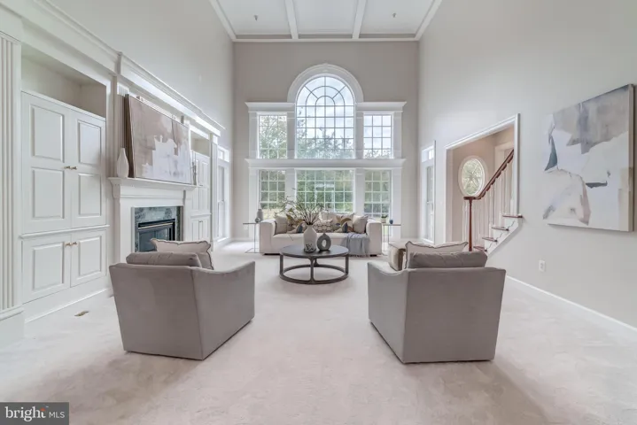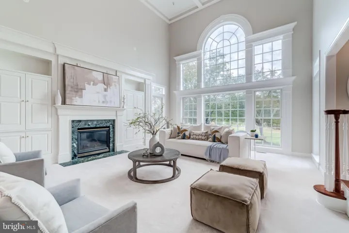 Upon entry, you are greeted by a grand two-story foyer featuring gleaming Brazilian cherry hardwood floors, dual staircases, and a stunning chandelier that sets the tone for the sophistication found within. The expansive two-story family room is ideal for entertaining, showcasing a gas fireplace, stately built-ins, and floor-to-ceiling windows that flood the space with natural light. This space also features brand-new carpeting for added comfort.