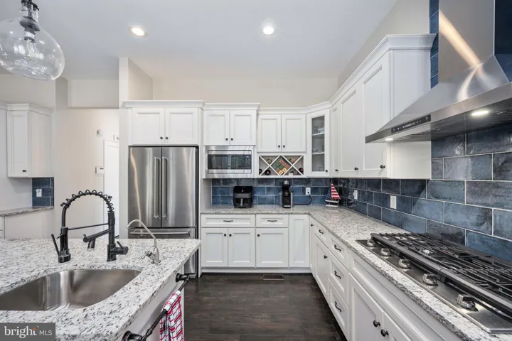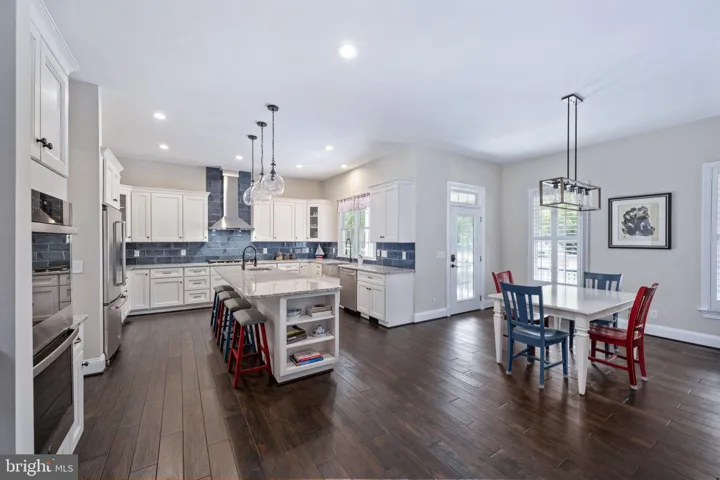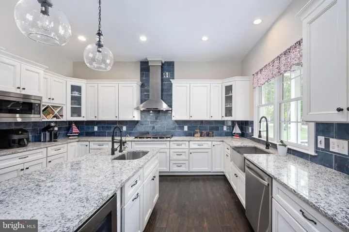 The gourmet kitchen is a chef’s dream with stainless steel appliances, gas cooktop, double ovens, wine fridge, farmhouse sink, prep sink with water filtration, and an oversized island. A walk-in Butler’s pantry with custom cabinetry adds function and style. Enjoy meals in the breakfast room with access to a charming newly refinished wrap-around porch.